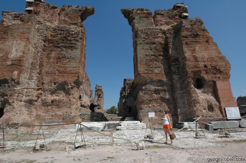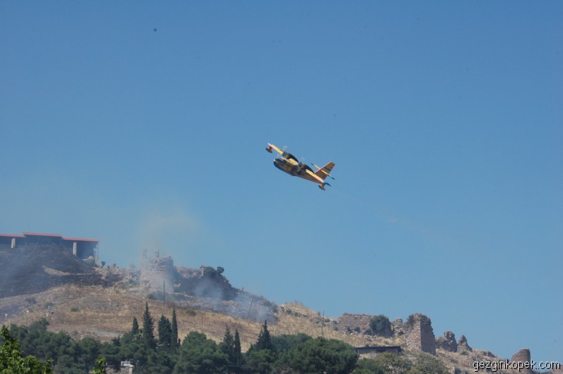 Buradan Bergama’ya gidiyoruz. Ancak Bergama’ya girdiğimiz uzaktan dumanları görüyoruz. Bergama Kale çevresi yanıyor. Bu yüzden yukarı çıkışlarda durdurulmuş durumda. Yine içimiz acıyarak izliyoruz. Bergama içinde bulunan Kızıl Avlu (Mısır Tanrılar Tapınağı) geziyoruz.
